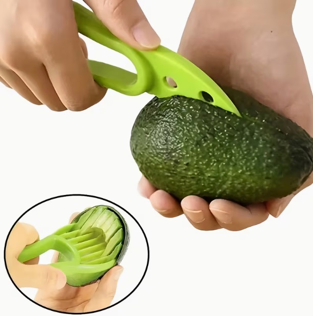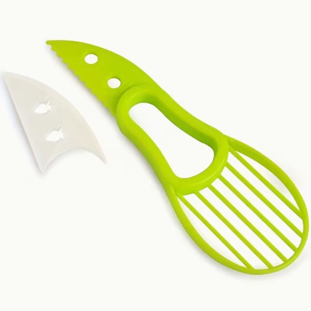 Praktický kráječ na avokádo je ideálním pomocníkem pro snadnou a rychlou přípravu tohoto oblíbeného ovoce. Umožňuje bezpečné rozkrojení, vyjmutí pecky i vytvoření rovnoměrných plátků během několika vteřin. Díky promyšlené konstrukci není potřeba používat klasické ostré nože ani složité pohyby. Zelené provedení z odolného plastu zapadne do každé moderní kuchyně.