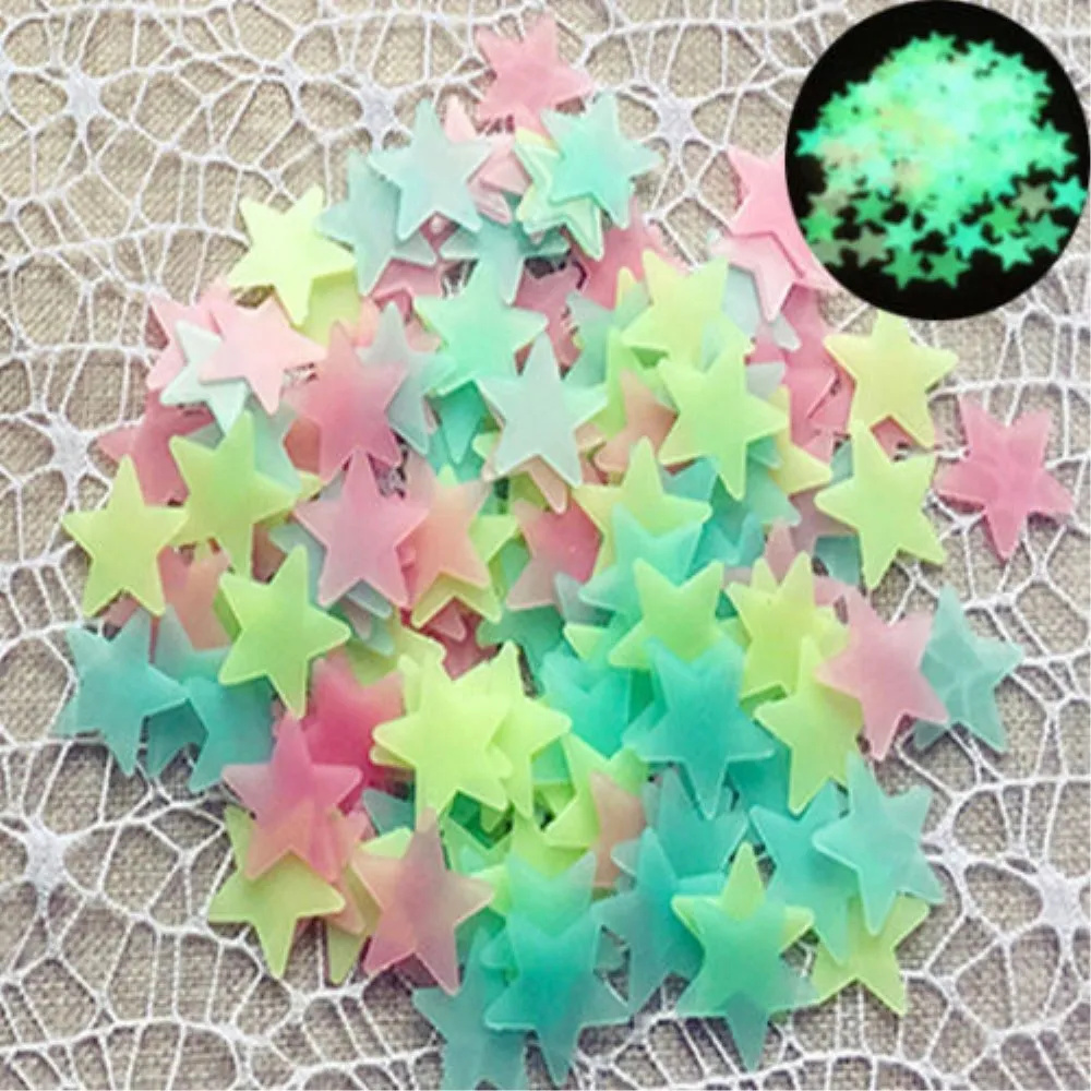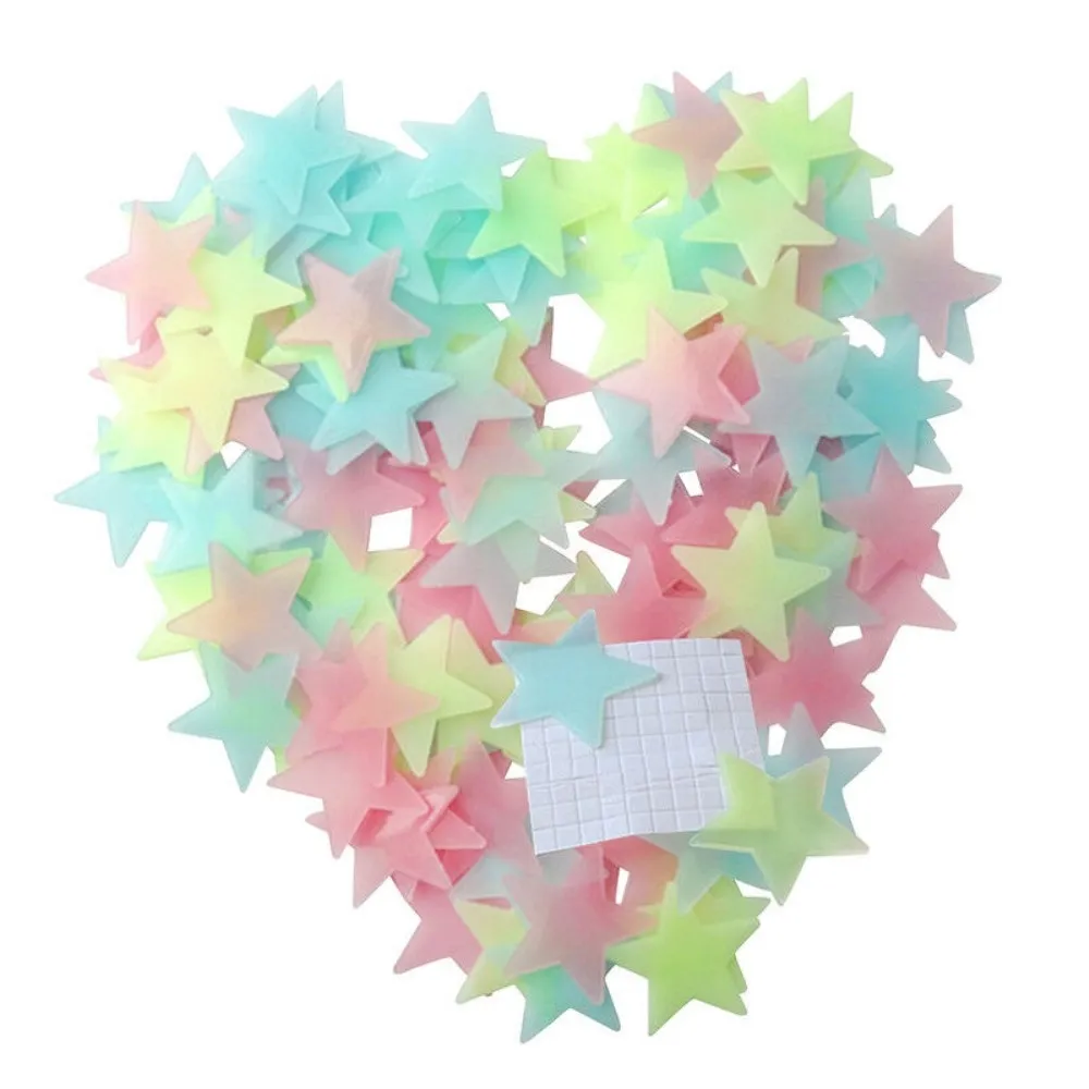 100 kusů 3D nalepovacích fluorescenčních hvězdiček na zeď