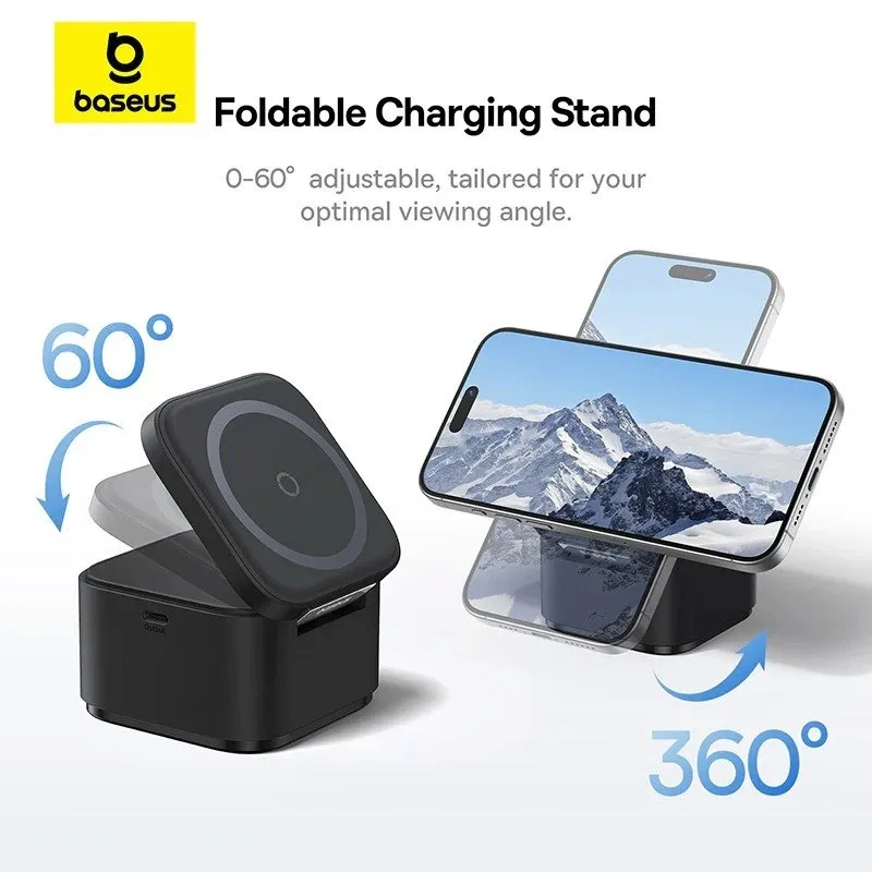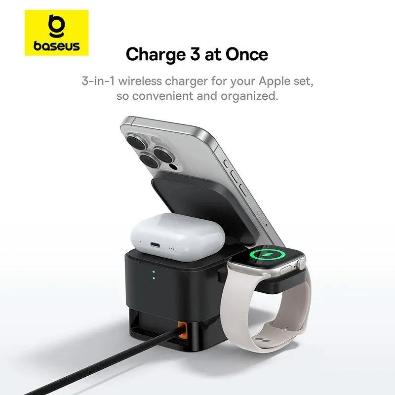 Baseus MagPro je praktická a stylová nabíjecí stanice určená pro současné bezdrátové nabíjení až tří zařízení najednou – chytrého telefonu, bezdrátových sluchátek a chytrých hodinek.