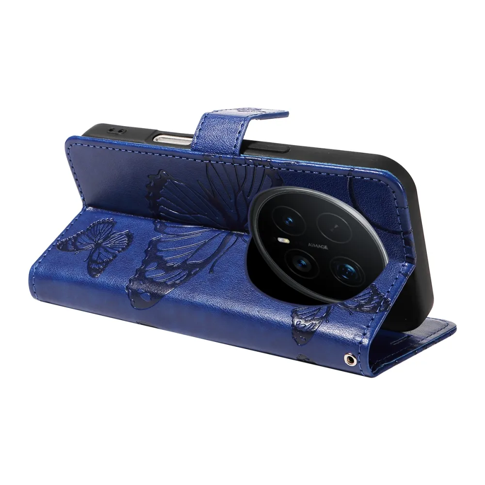Modré peněženkové pouzdro Big Butterfly na mobil Honor Magic 8 Pro 5G