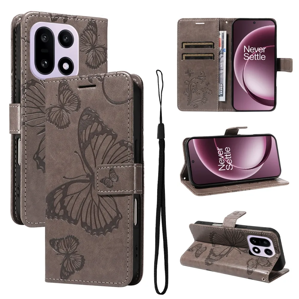 Big Butterfly knížkové pouzdro na OnePlus 15 5G - šedé