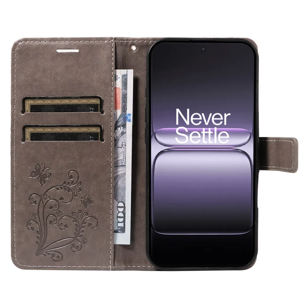 Big Butterfly knížkové pouzdro na OnePlus Nord 5 5G - šedé
