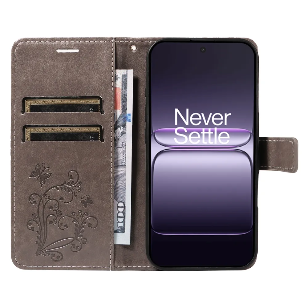 Big Butterfly knížkové pouzdro na OnePlus Nord CE5 5G - šedé