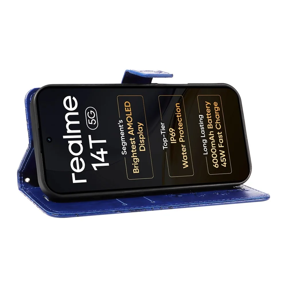 Modré peněženkové pouzdro Big Butterfly na mobil Realme 14 5G/14T 5G