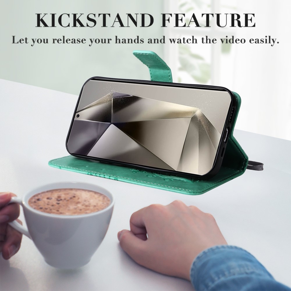 Modrozelené peněženkové pouzdro Big Butterfly na mobil Samsung Galaxy S25 Ultra