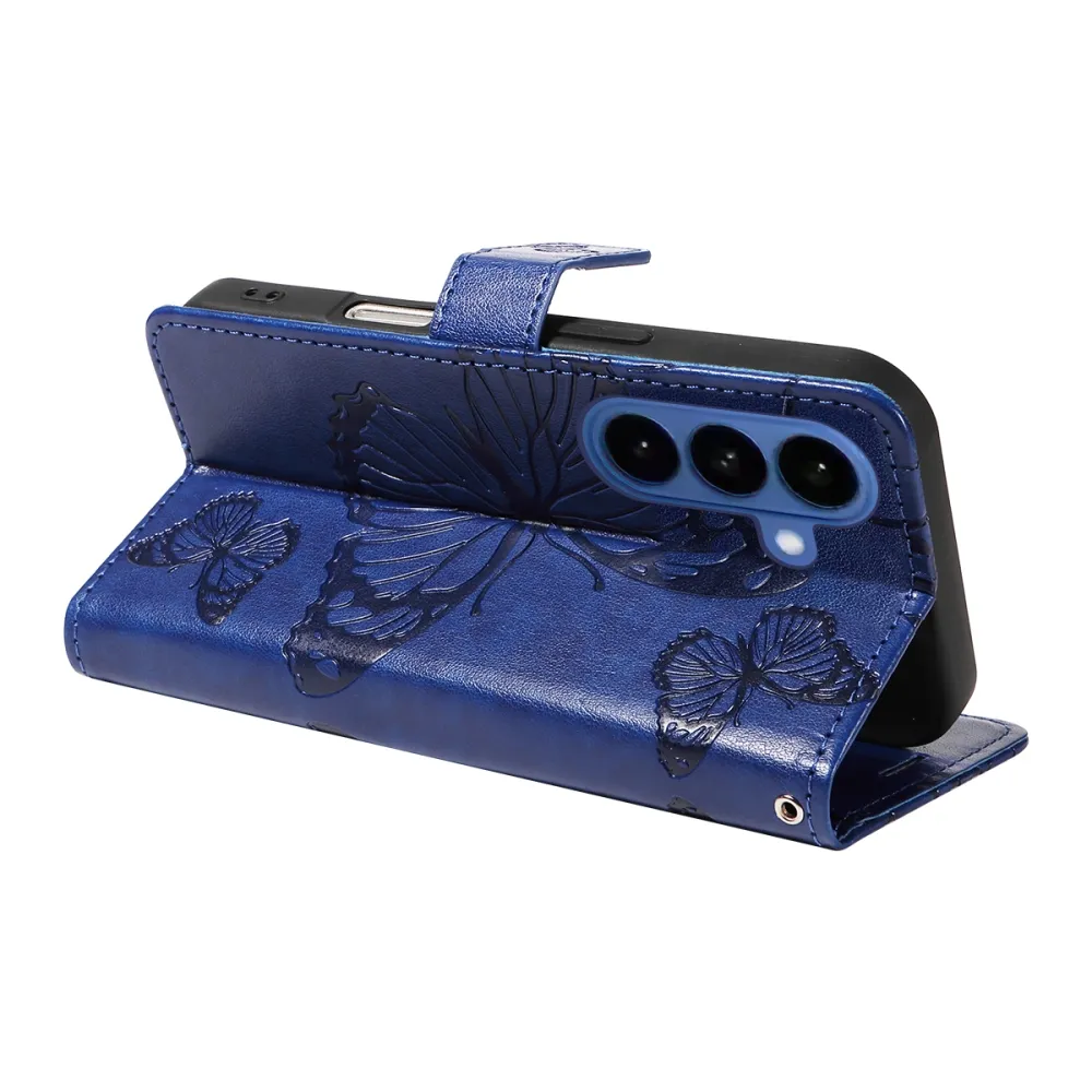 Modré peněženkové pouzdro Big Butterfly na mobil Samsung Galaxy S26/S26 Pro
