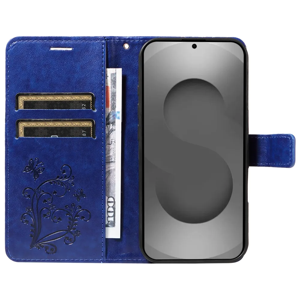 Modré peněženkové pouzdro Big Butterfly na mobil Samsung Galaxy S26 Ultra