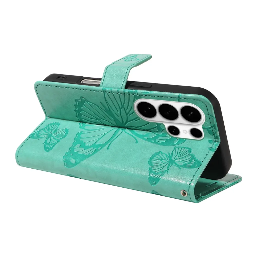 Modrozelené peněženkové pouzdro Big Butterfly na mobil Samsung Galaxy S26 Ultra