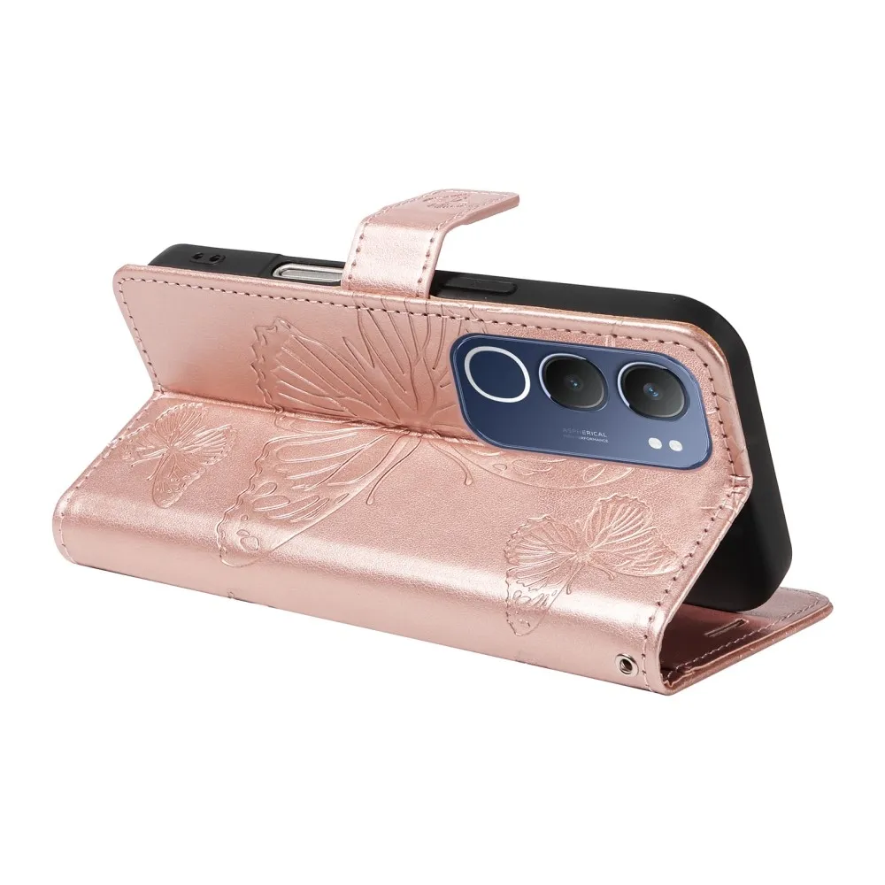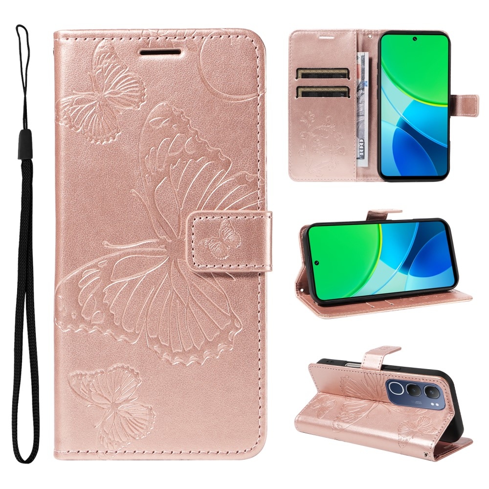 Big Butterfly knížkové pouzdro na Vivo Y19s - růžovozlaté