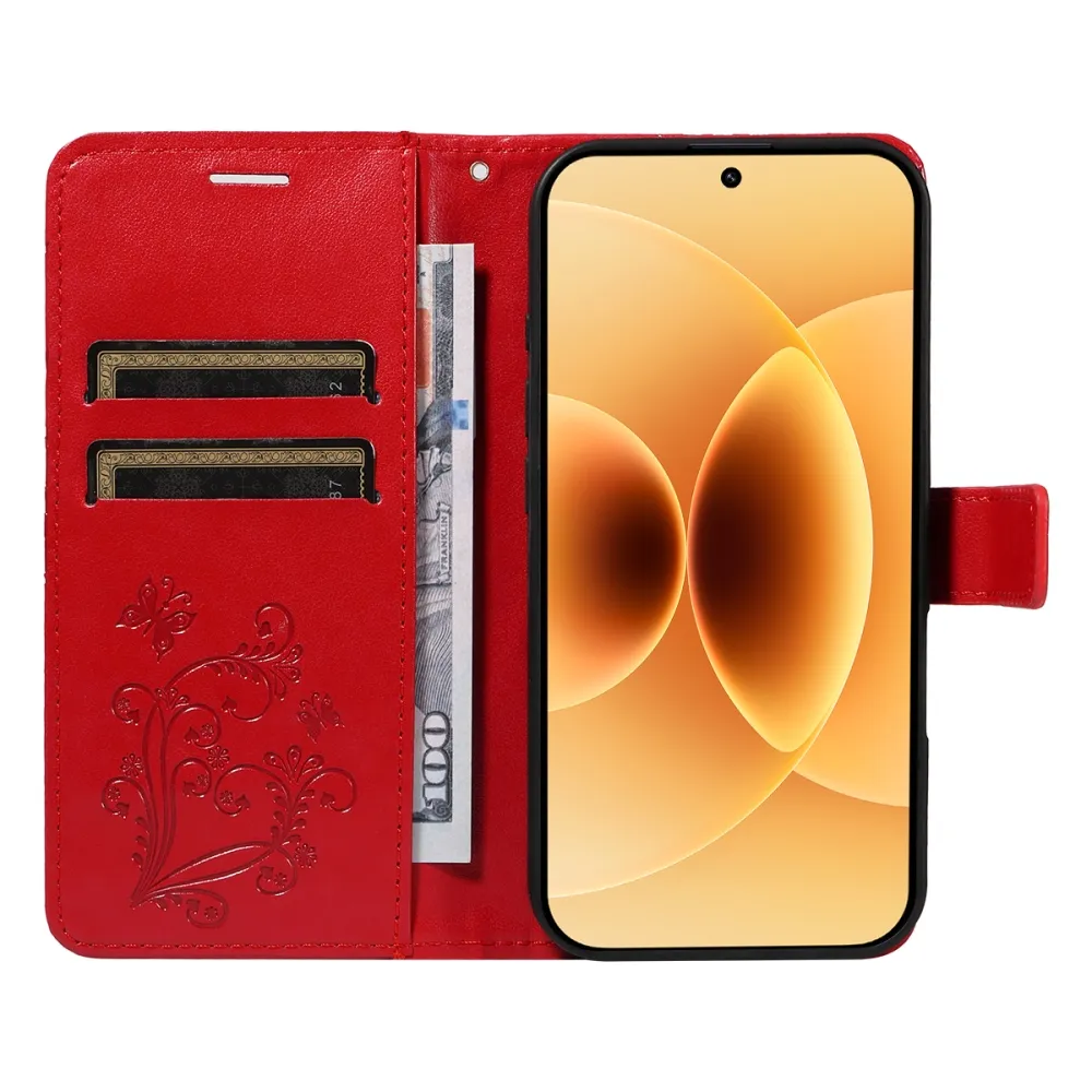 Červené peněženkové pouzdro Big Butterfly na mobil Xiaomi 17
