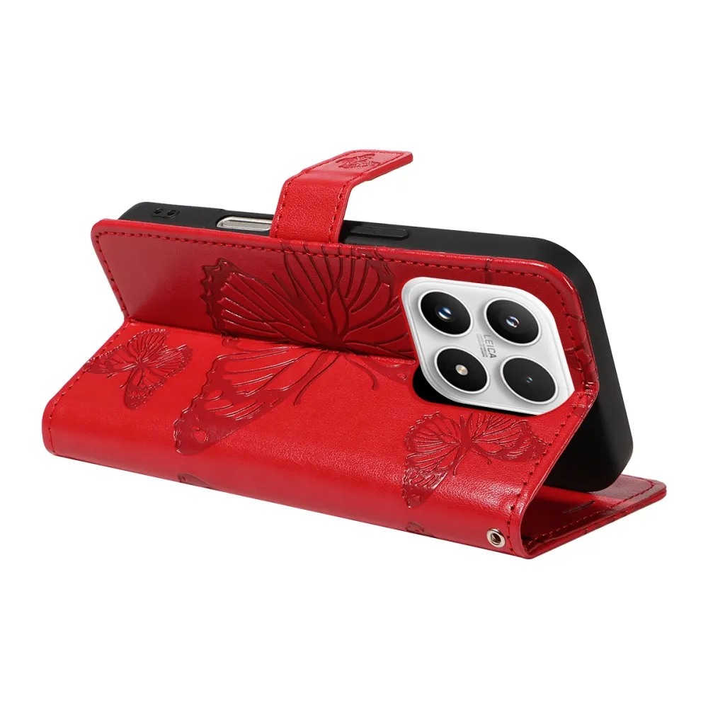 Big Butterfly knížkové pouzdro na Xiaomi 17 - červené