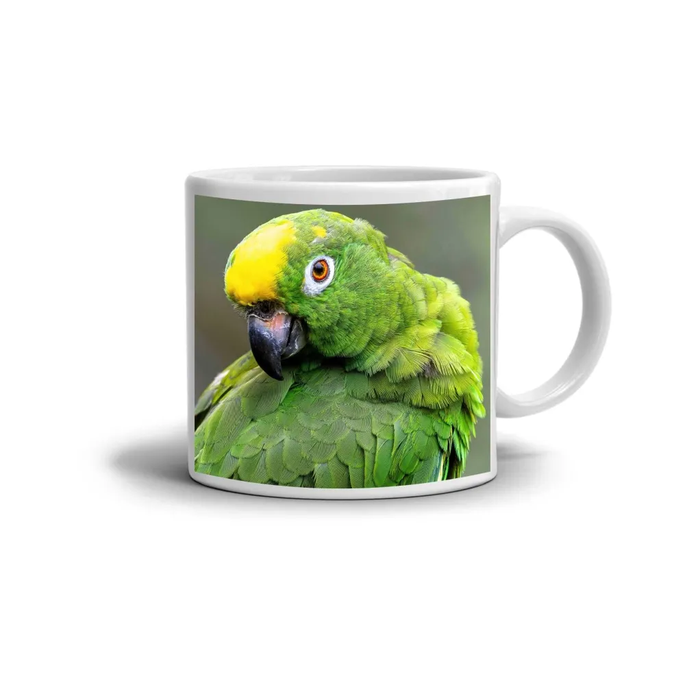 Zářivý motiv zeleného amazoňana působí svěže a optimisticky. Jeho sytě zelené peří s jasně žlutou korunou přitahuje pozornost a vyzařuje radost i živost tropů. Každý detail peří je dokonale vykreslen a dodává hrnku realistický a živý vzhled. Tento design potěší milovníky exotických ptáků i všechny, kteří mají rádi přírodu a výrazné barvy. Hrnek je vhodný do myčky!