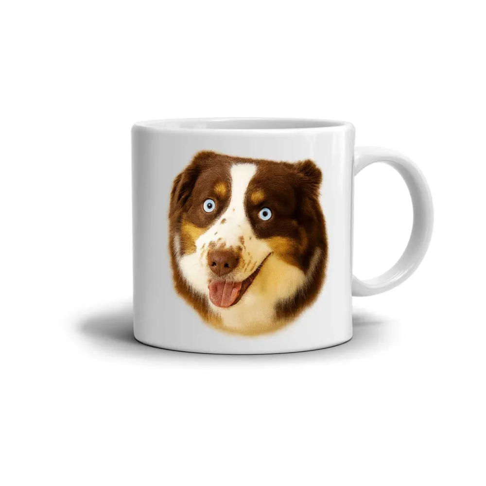 Motiv hrnku zachycuje veselý portrét australského ovčáka s typickým výrazem plným radosti a živosti. Jeho jasně modré oči a upřímný úsměv okamžitě zlepší náladu a dodají energii do nového dne. Tento hrnek působí optimisticky a přátelsky, ideální pro všechny, kdo milují psy a chtějí začít ráno s úsměvem. Hrnek je vhodný do myčky!