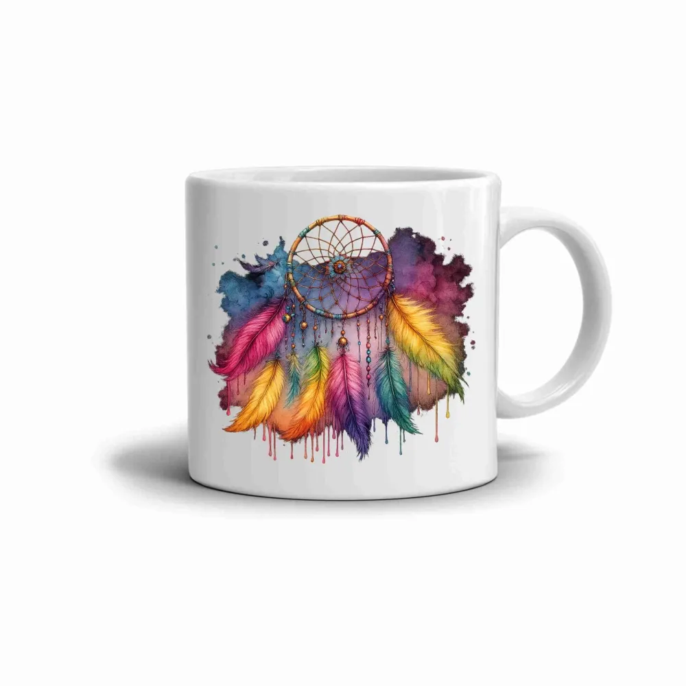 Tento bílý keramický hrnek zdobí barevný lapač snů, jehož živé barvy a jemné detaily přinášejí pocit harmonie a inspirace. Motiv působí jemně a přitom výrazně, což činí hrnek vhodným pro každodenní používání i jako dekorativní prvek. Hrnek je vhodný do myčky!