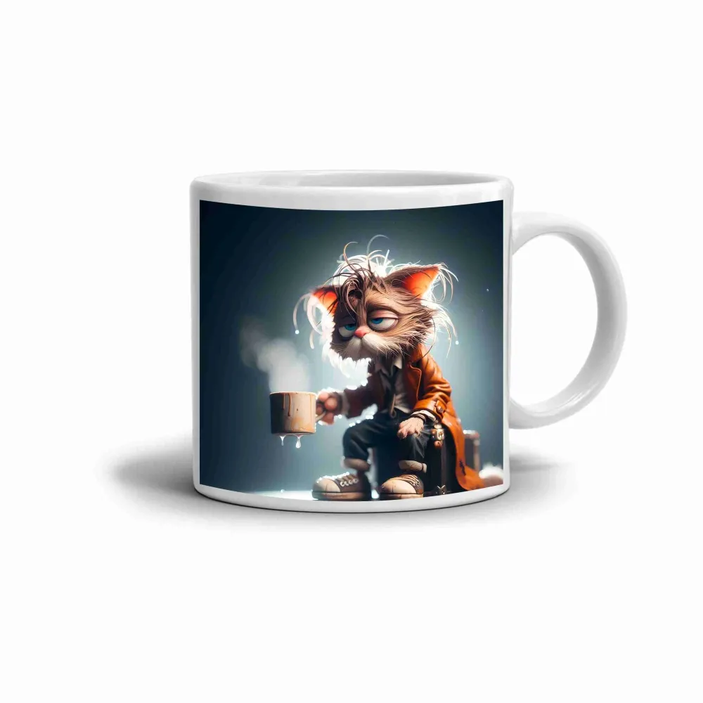 Motiv hrnku přináší úsměvnou scénu ospalé kočky s hrnkem horké kávy, která dokonale vystihuje náladu ranního probouzení. Výraz kočky a jemné barevné ladění vytvářejí vtipnou i roztomilou atmosféru. Tento motiv potěší každého, kdo začíná den s kávou a smyslem pro humor. Hrnek je vhodný do myčky!