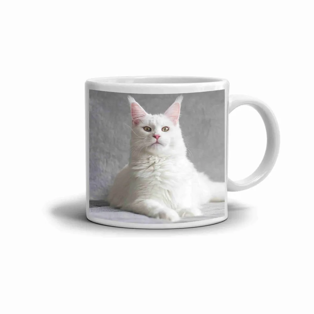 Na hrnku se objevuje nádherná mainská mývalí kočka, jejíž bílé hebké chlupy a hrdý výraz působí opravdu výjimečně. Tento kočičí motiv vytváří elegantní a zároveň něžnou atmosféru, která ozdobí každý okamžik u oblíbeného nápoje. Detailní provedení srsti i jemné světlo dodávají motivu jemnost a klid. Hrnek je vhodný do myčky!