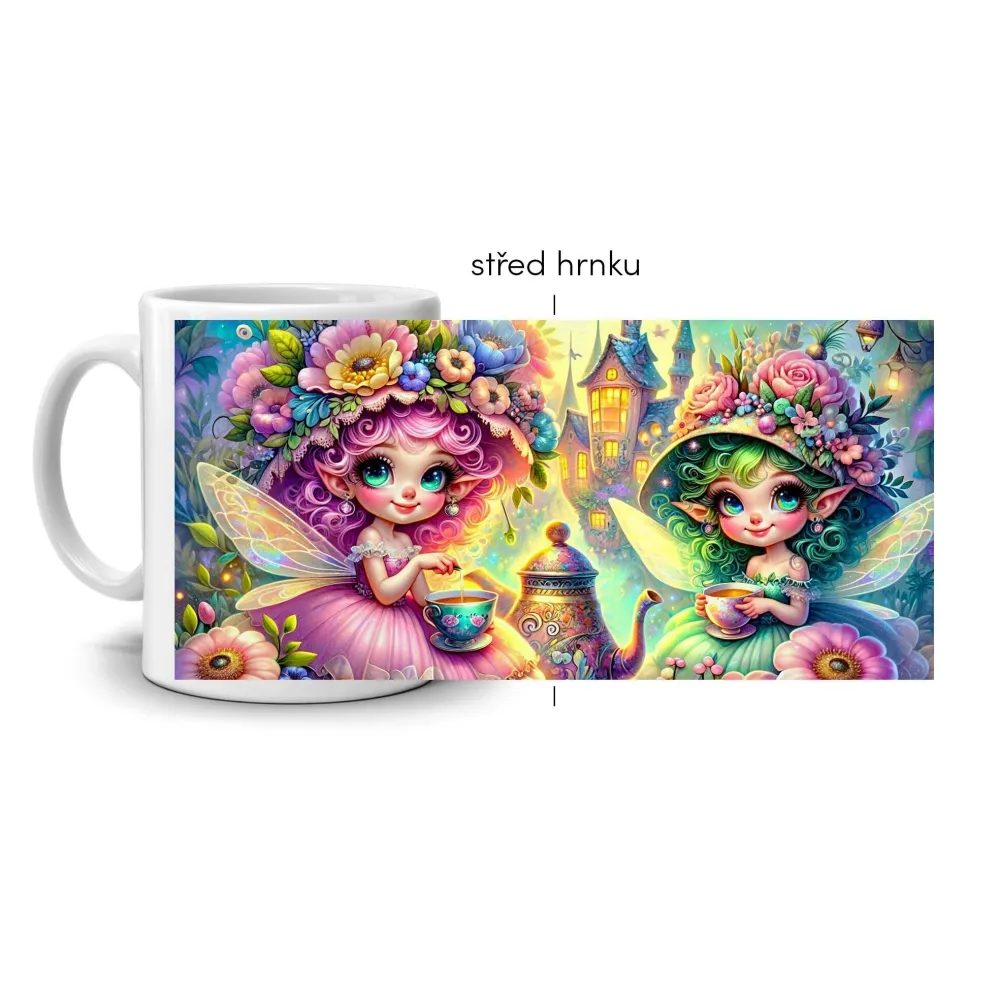 Okouzlující motiv s dvěma vílami v květinových šatech přináší do každého dne dotek pohádkového světa. Jemné barvy, zářící detaily a kouzelná atmosféra vytvářejí harmonii plnou fantazie a radosti. Tento hrnek působí hravě i elegantně zároveň a potěší každého, kdo miluje pohádkové motivy a snivý design. Hrnek je vhodný do myčky!