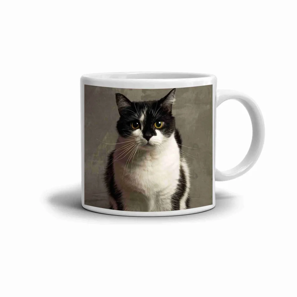 Výrazný portrét černobílé kočky dodává tomuto hrnku jemný a osobitý motiv, který působí klidně a zároveň velmi půvabně. Realisticky zachycené detaily srsti, výrazné oči a kontrastní barevnost vytvářejí dojem něžné elegance, díky níž působí celý motiv přirozeně a velmi příjemně. Hrnek je vhodný do myčky!