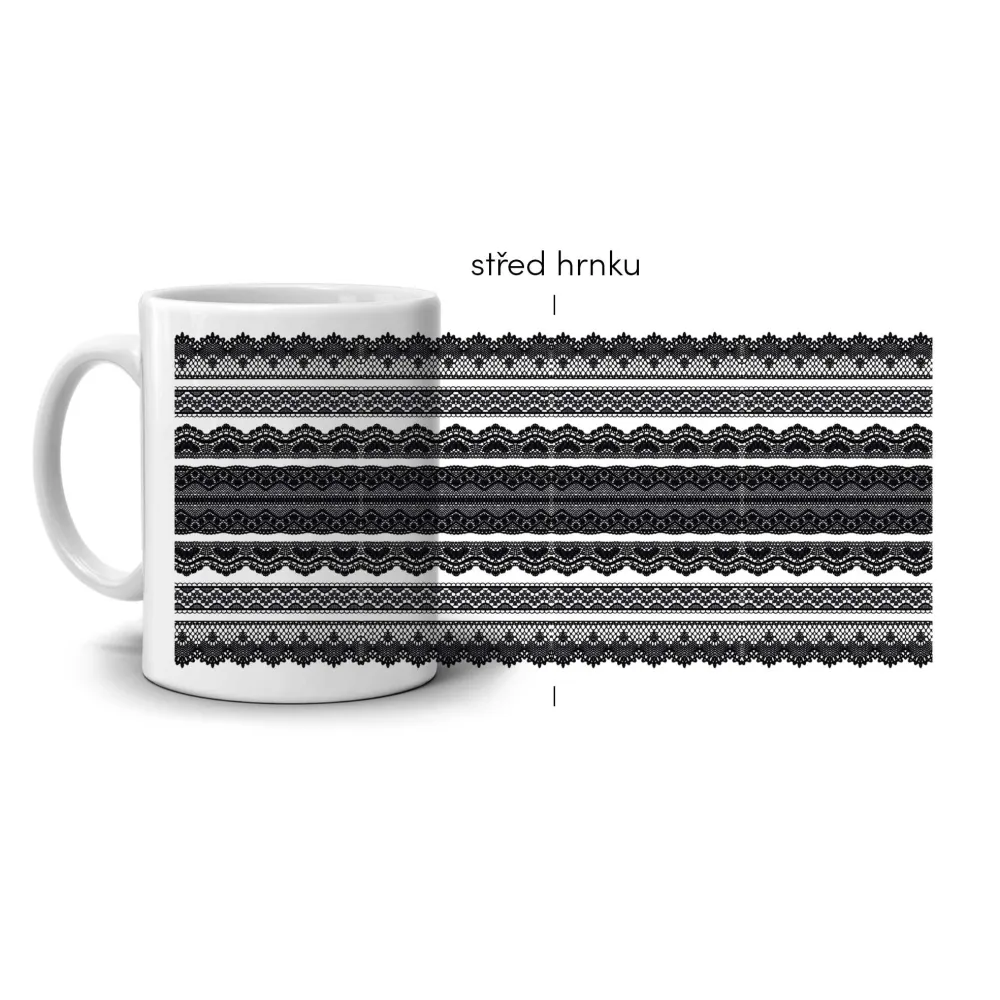 Hrnek s černým krajkovým motivem je stylovým dárkem pro milovníky elegantního a moderního designu. Svým jedinečným vzhledem se hodí jak do kanceláře, tak do domácí pohody a dodá každému dni špetku luxusu.