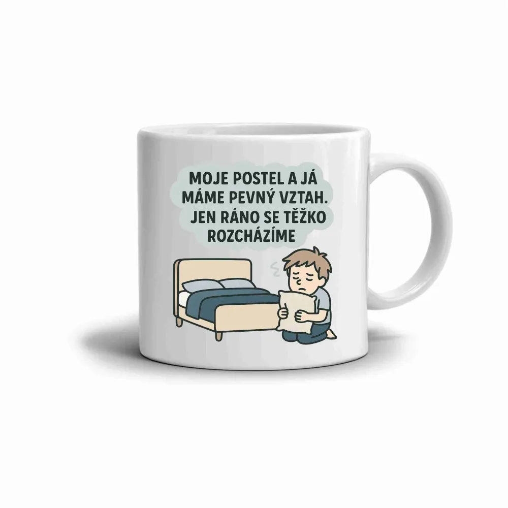 Citát s vtipným textem o posteli pobaví každého, kdo má ráno problém se vstáváním. Obrázek člověka, který se loučí se svou postelí, vystihuje známý ranní boj mezi pohodlím a povinnostmi. Ideální hrnek pro všechny milovníky spánku, kteří si váží každé minuty pod peřinou. Hrnek je vhodný do myčky!