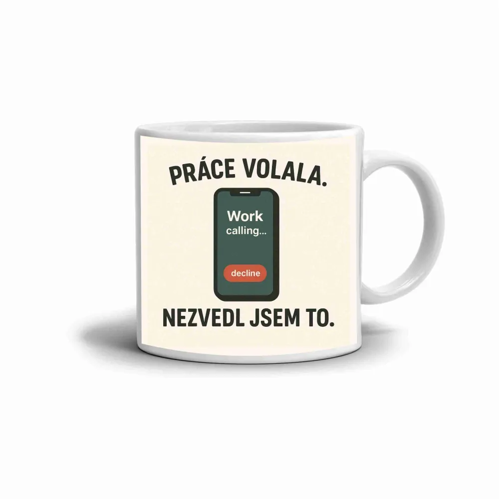 Citát s pracovním humorem vystihuje pocity všech, kteří si občas potřebují od práce trochu odpočinout. Nápis doplněný obrázkem telefonu s odmítnutým hovorem působí vtipně a přitom trefně, takže hrnek zaručeně pobaví v kanceláři i doma. Skvělý společník pro chvíle, kdy si zasloužíte pauzu. Hrnek je vhodný do myčky!