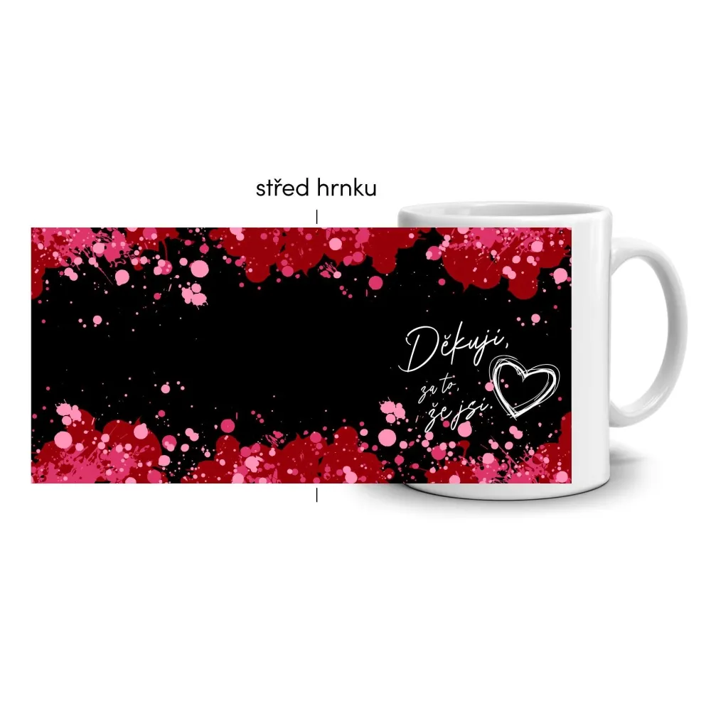 Kombinace černého podkladu s odstíny červené a růžové vytváří výrazný kontrast s elegantním charakterem. Motiv působí vyváženě a esteticky, propojuje moderní styl s jemnými emocemi. Celek působí soudržně a decentně, takže hrnek zaujme svým čistým designem a originálním pojetím. Hrnek je vhodný do myčky!