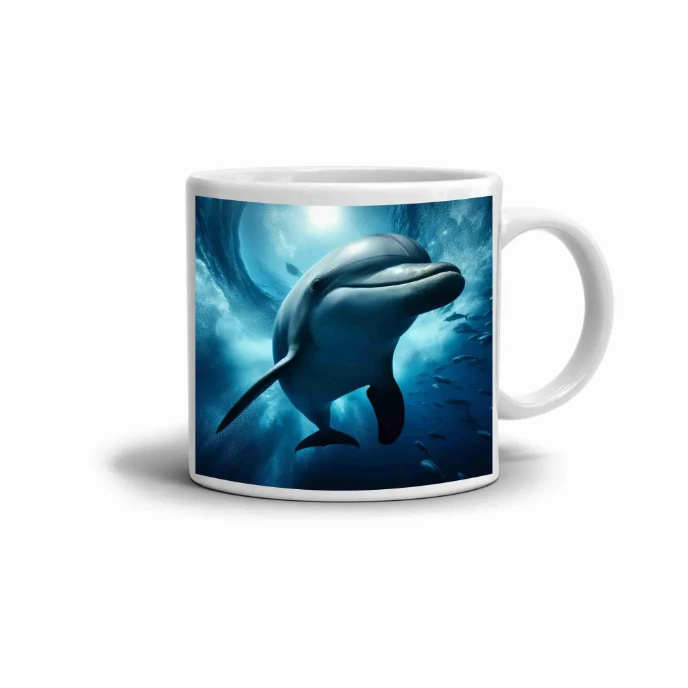 Elegantní delfín plující modrým oceánem vytváří dojem svobody, energie a hlubokého spojení s přírodou. Světelné odlesky a tmavé modré tóny pod hladinou dodávají motivu hloubku a dynamiku, zatímco delfín působí přátelsky a harmonicky. Tento motiv přináší každý den pocit vitality a pozitivní nálady. Ideální pro milovníky moře a vodního života, kteří hledají krásu a inspiraci v každém doušku. Hrnek je vhodný do myčky!