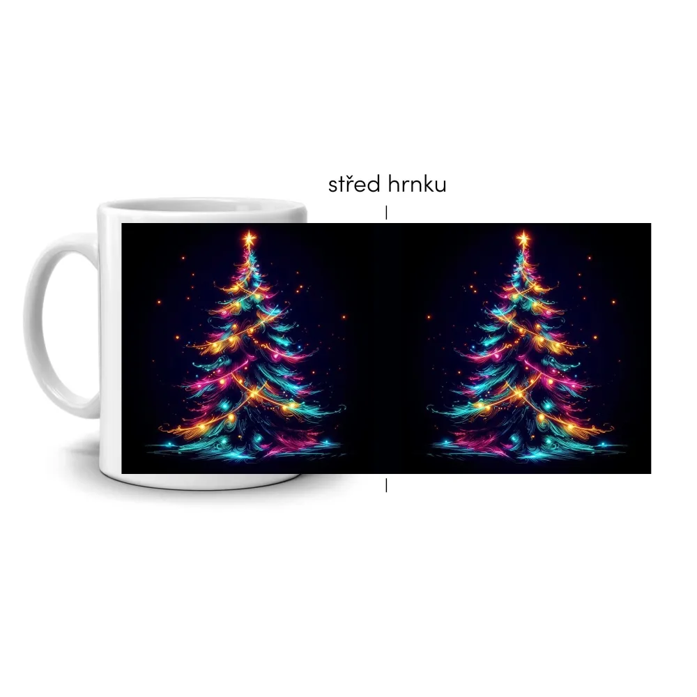 Hravý a pestře zářící motiv vánočního stromku dodává hrnku kouzelně slavnostní atmosféru. Barevné světelné linie vytvářejí dojem jemného pohybu a strom působí jako živý, rozzářený uprostřed zimní noci. Kombinace sytých odstínů a tmavého pozadí vytváří moderní a výrazný vzhled, který okamžitě přitáhne pozornost. Hrnek je vhodný do myčky!