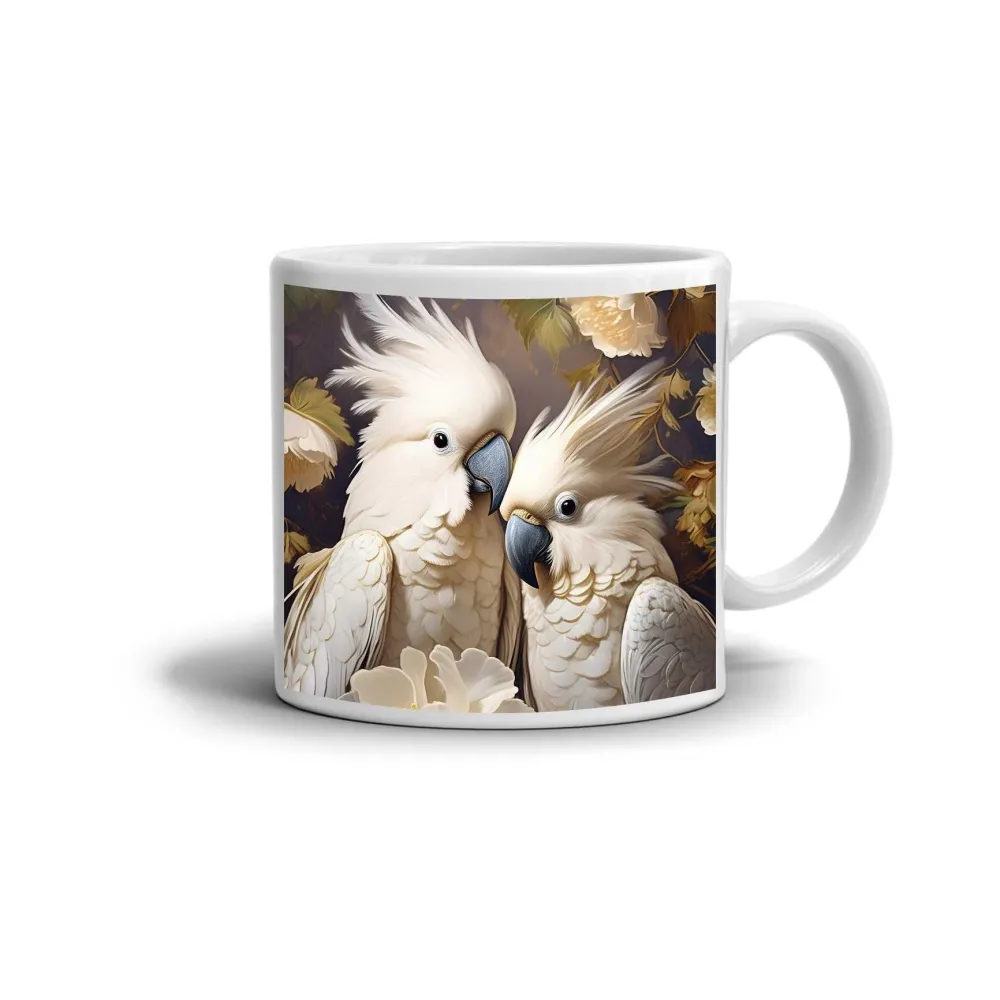 Něžný motiv kakaduů přináší do každého dne eleganci a klid. Dvojice bílých papoušků obklopených květy působí harmonicky a vyzařuje vzájemnou náklonnost. Jemné odstíny bílé a krémové v kombinaci se zlatavým světlem vytvářejí dojem čistoty a něhy. Tento motiv je jako poetický obraz, který spojuje krásu přírody s jemností emocí. Hrnek je vhodný do myčky!