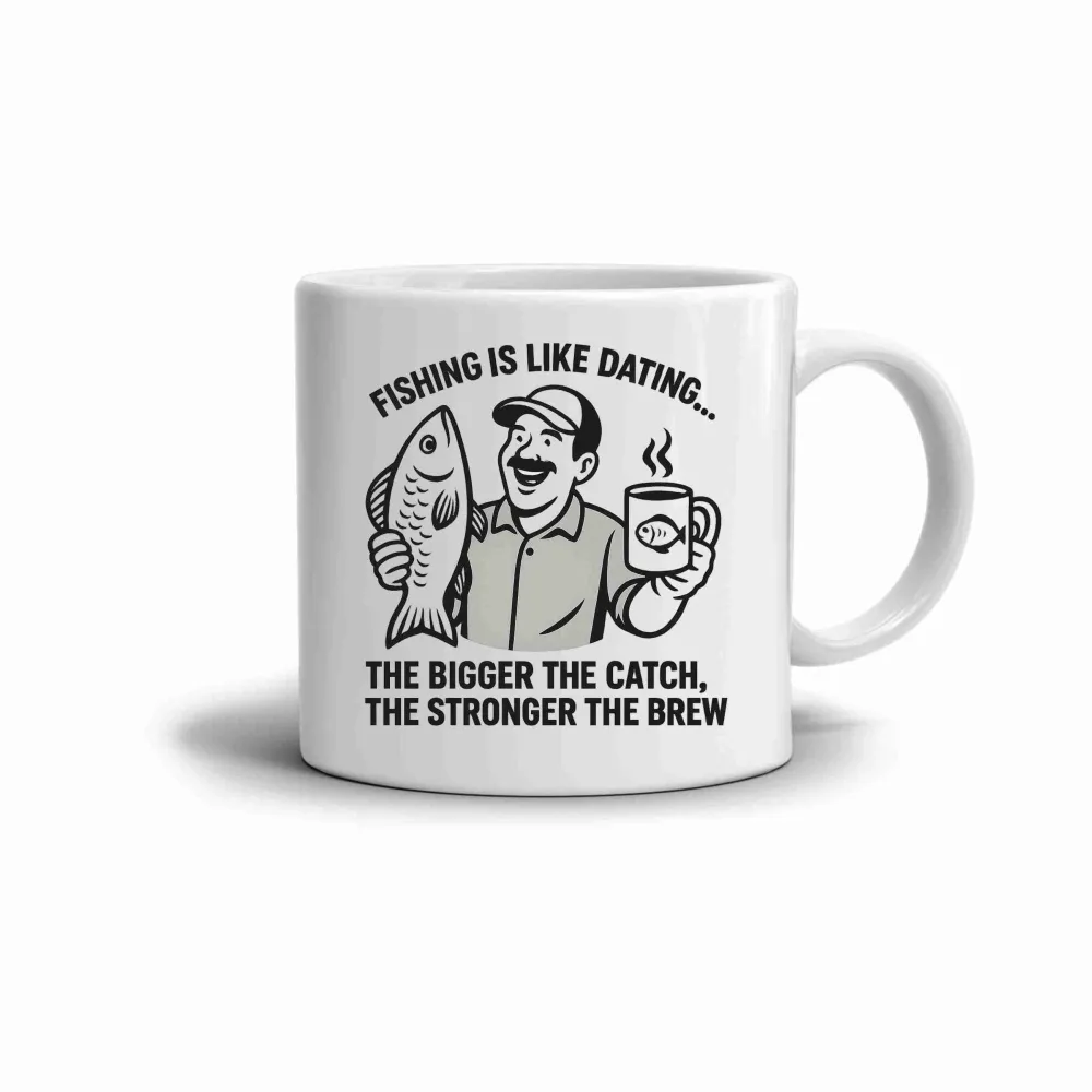 Vtipný motiv zachycuje spokojeného rybáře s úlovkem a hrnkem v ruce, který připomíná radost z každého dne u vody. Kombinace kresleného stylu a humorného nadhledu osloví každého, kdo má rád rybaření i dobrou náladu. Hrnek spojuje lásku k rybám, odpočinku a šálku silné kávy po úspěšném lovu. Hrnek je vhodný do myčky!