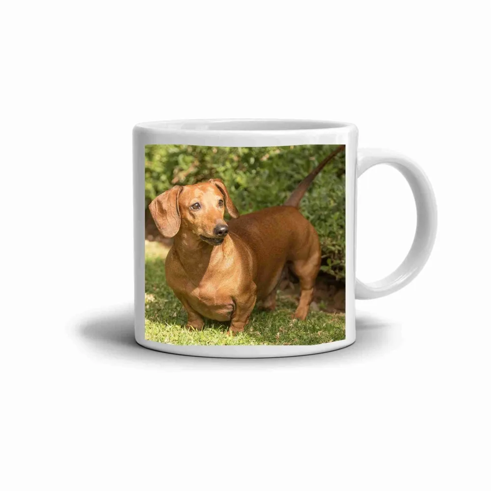 Motiv s jezevčíkem na zahradě působí mile a optimisticky. Tento chytrý a energický pes je zachycen v typickém postoji plném pozornosti a zvědavosti, který vystihuje jeho povahu. Teplé barvy a přirozené prostředí dodávají obrázku útulnou atmosféru, díky které hrnek potěší každého milovníka psů. Hrnek je vhodný do myčky!