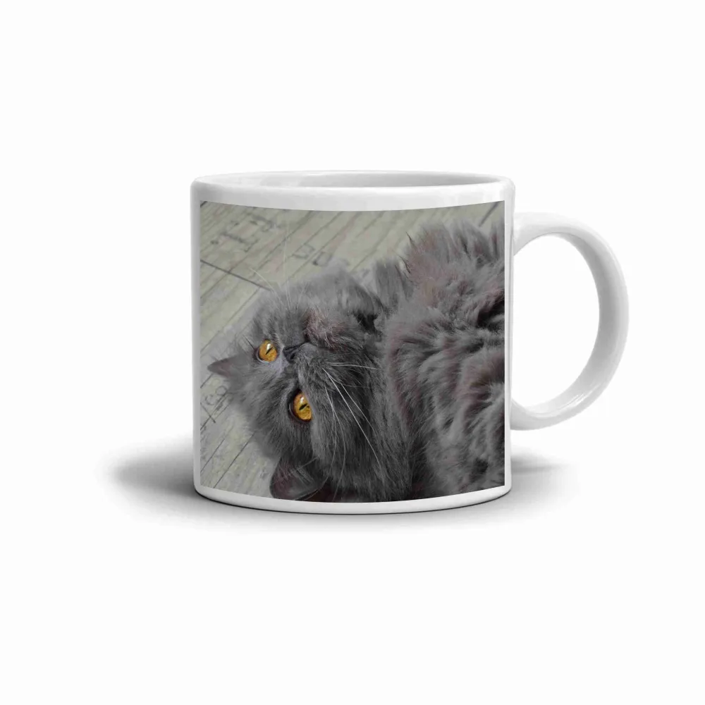 Do popředí se dostává perská kočka se svým hebkým, bohatým kožíškem a výraznýma jantarovýma očima, které dodávají motivu hřejivý a okouzlující výraz. Ležérní poloha kočky působí uvolněně a mile, díky čemuž celý motiv vyzařuje příjemnou domácí atmosféru. Tento hrnek potěší každého, kdo má rád klidné chvíle v doprovodu kočičích přátel. Hrnek je vhodný do myčky!