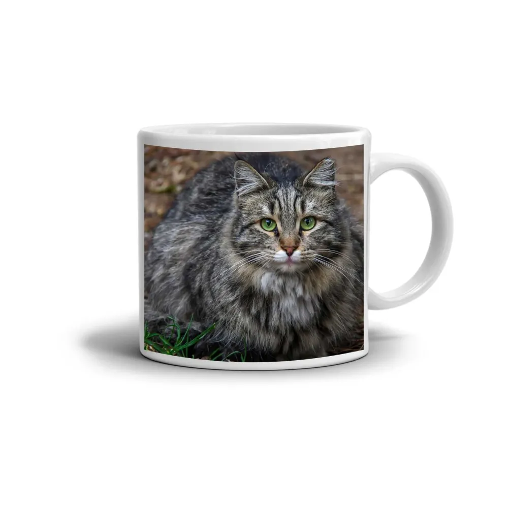 Motiv hrnku zobrazuje krásnou mourovatou kočku s výraznýma zelenýma očima, která působí klidně a sebejistě. Hebká srst s jemnými odstíny šedi vytváří příjemný kontrast s bílým povrchem hrnku. Celý motiv působí přirozeně a elegantně, takže tento hrnek se stane oblíbeným společníkem při každém šálku kávy nebo čaje. Hrnek je vhodný do myčky!