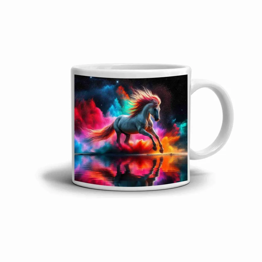 Na hrnku vyniká kůň v dynamickém barevném pojetí, zachycený v pohybu a obklopený sytými odstíny, které vytvářejí výrazný vizuální kontrast. Motiv působí energicky a moderně, aniž by ztrácel čitelnost nebo rovnováhu. Spojení pohybu, barev a odrazu na hladině dodává celku osobitý charakter, který zaujme na první pohled a přirozeně se hodí pro každodenní používání. Hrnek je vhodný do myčky!