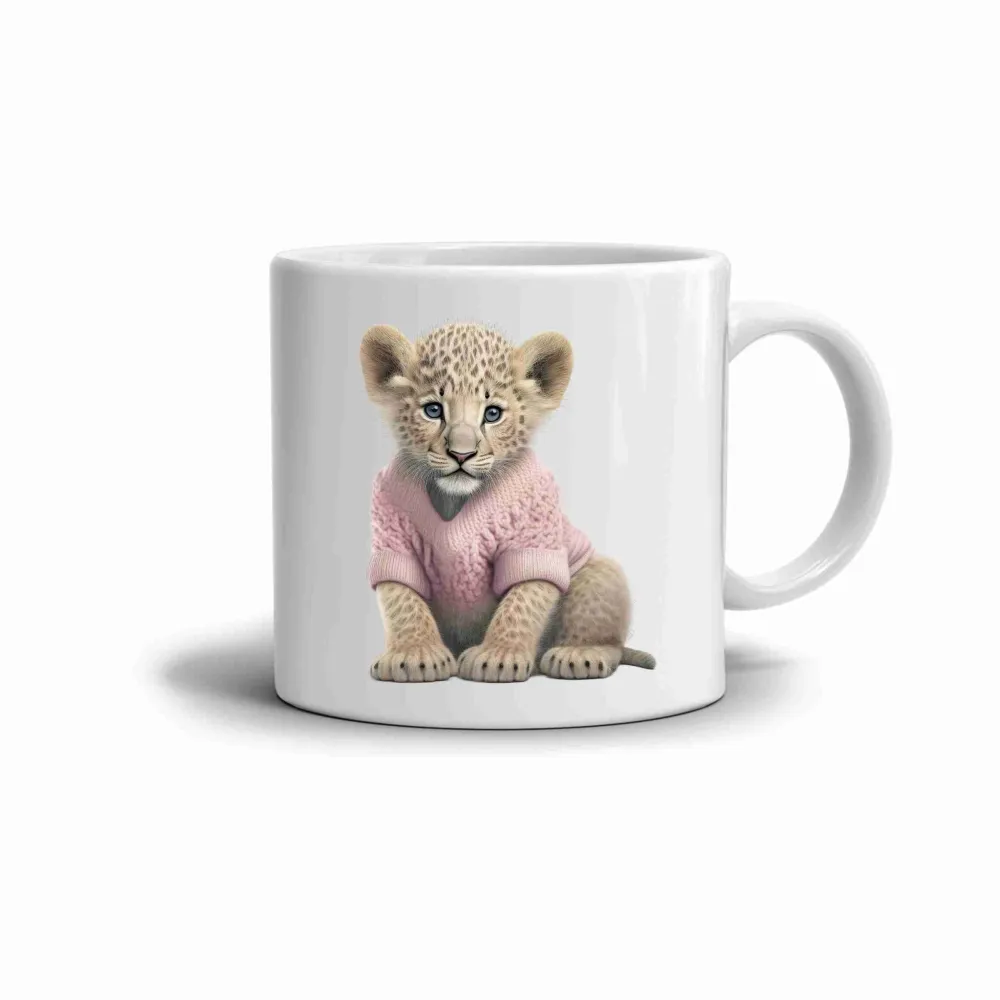 Motiv hrnku zobrazuje roztomilého lvíčka v jemném růžovém svetru, který působí přívětivě a klidně. Jeho modré oči a drobný výraz v kombinaci s hebkou srstí vytvářejí dojem něhy a tepla. Celek působí harmonicky a přináší pocit radosti i hravosti. Tento motiv je jako stvořený pro všechny, kteří mají rádi zvířata, jemné barvy a útulný styl. Hrnek je vhodný do myčky!