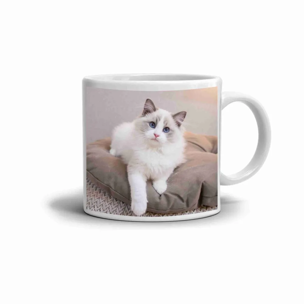 Jemně laděný ragdoll motiv zachycuje rozkošnou kočku s typickým hedvábným kožíškem a modrýma očima, které působí neuvěřitelně něžně. Tento obrázek vytváří klidnou a hřejivou atmosféru, díky níž se hrnek stává krásným doplňkem pro chvíle odpočinku. Měkké barvy a měkoučký výraz kočky dodávají motivu kouzlo, které si zamiluje každý milovník koček. Hrnek je vhodný do myčky!
