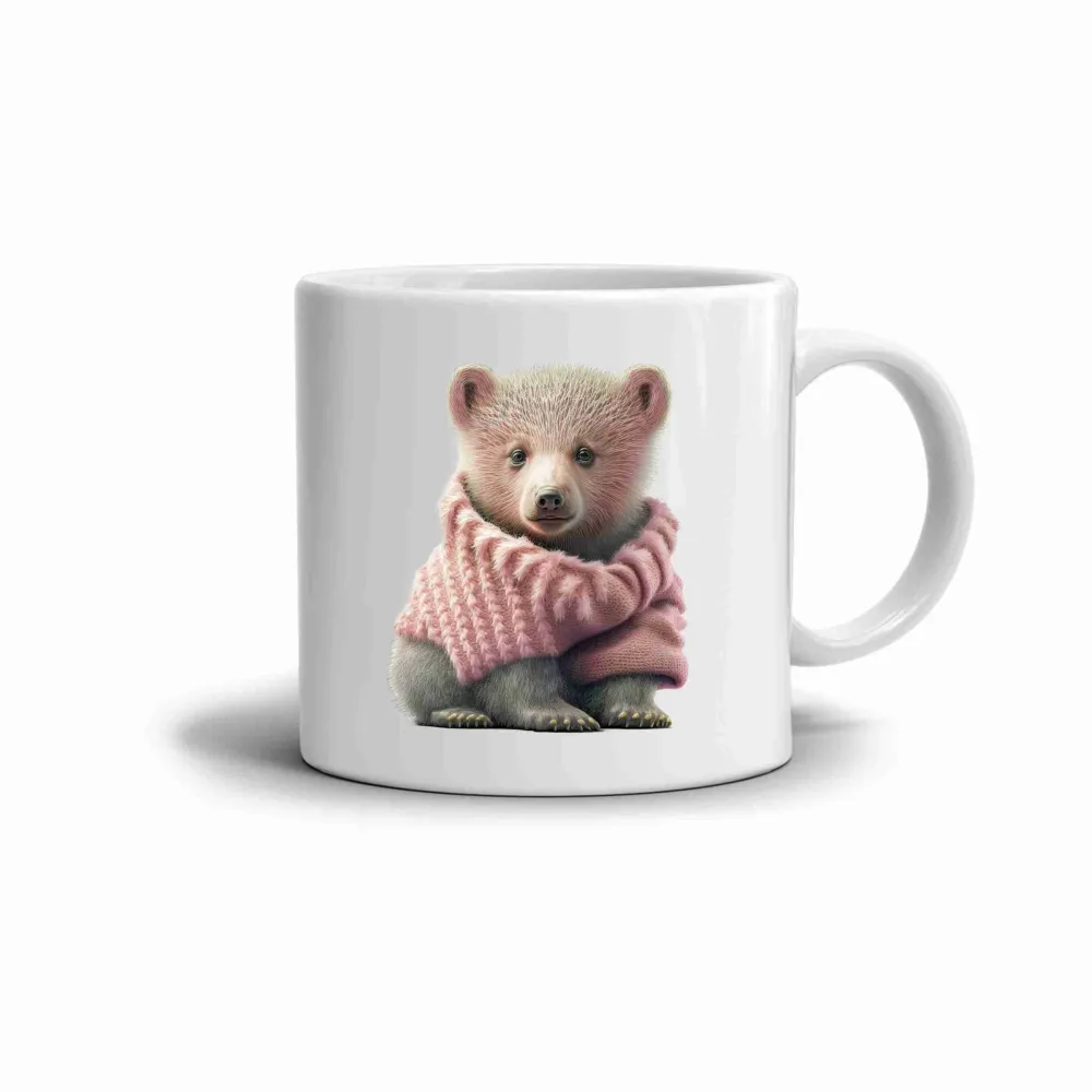 Na hrnku se objevuje medvídek v pleteném svetru, který působí klidně a mile už na první pohled. Motiv je jemný a vyvážený, bez zbytečné okázalosti, takže se snadno stane přirozenou součástí každodenního používání. Celek vytváří hřejivý dojem, který se hodí k pomalým ránům i klidným večerům s teplým nápojem. Hrnek je vhodný do myčky!