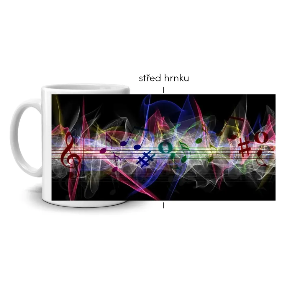 Abstraktní motiv s barevnými hudebními notami zachycuje rytmus, pohyb a radost z hudby. Kombinace sytých barev na tmavém pozadí vytváří efekt světelné energie, která jako by tančila v prostoru. Hrnek působí moderně a přináší pozitivní náladu při každém použití. Hrnek je vhodný do myčky!