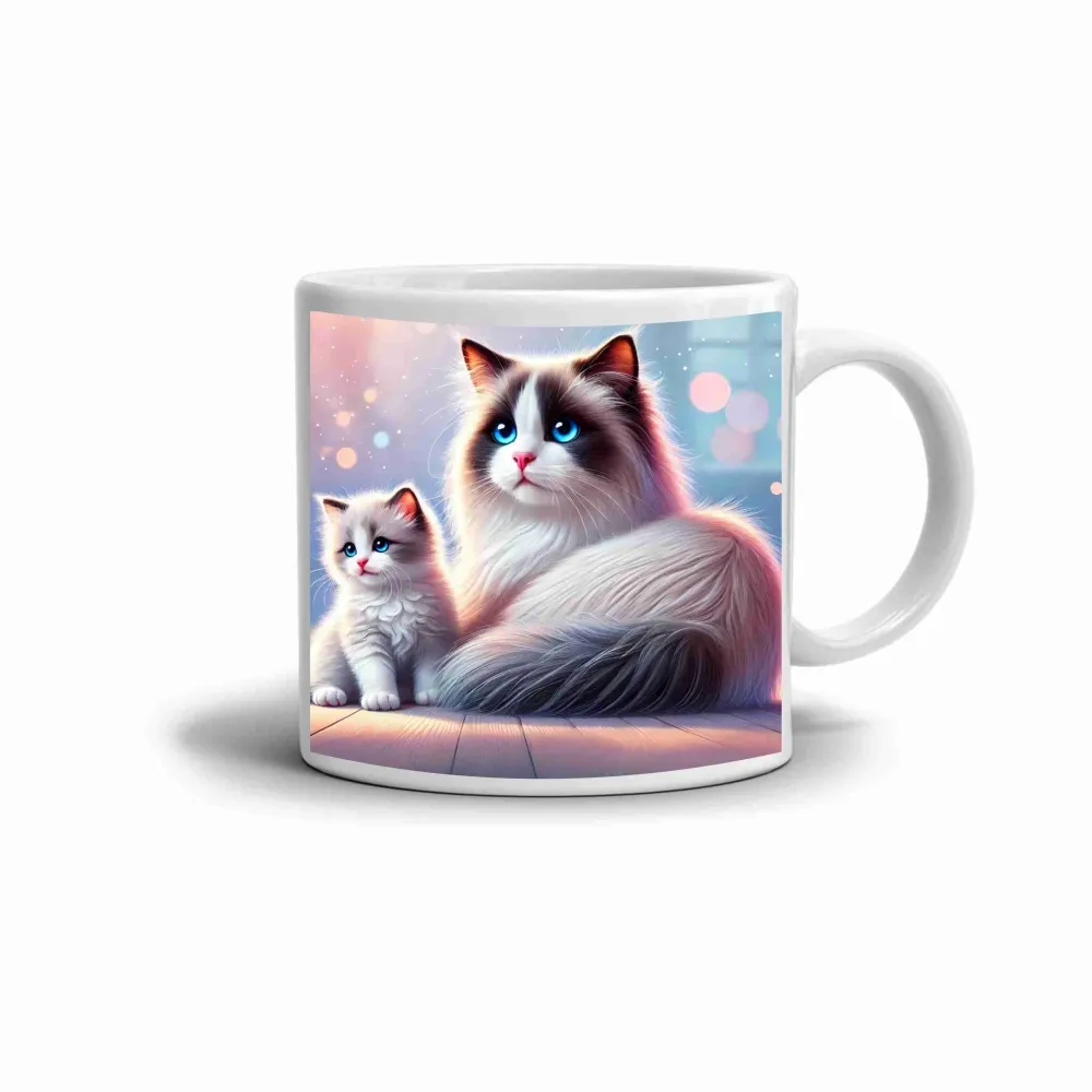 Jemně zpracovaná ilustrace kočičí maminky a jejího roztomilého kotěte vytváří půvabný motiv, který okamžitě přitáhne pozornost svou něhou a jemnými pastelovými barvami. Hřejivé světelné odlesky podtrhují poklidnou atmosféru scény a dodávají celému obrázku snový, laskavý charakter. Hrnek je vhodný do myčky!