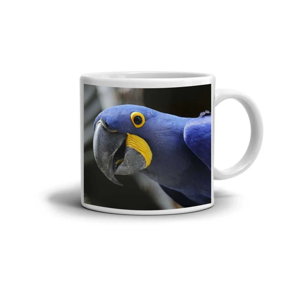 Výrazný motiv ary hyacintové zaujme svým intenzivním odstínem modré, který symbolizuje svobodu, sílu a eleganci. Žluté detaily kolem očí a zobáku vytvářejí působivý kontrast, díky kterému papoušek doslova ožívá. Každý detail peří je precizně zachycen a dodává hrnku realistický a působivý vzhled. Tento motiv přináší dotek exotiky a působí jako malý kousek tropické přírody. Hrnek je vhodný do myčky!