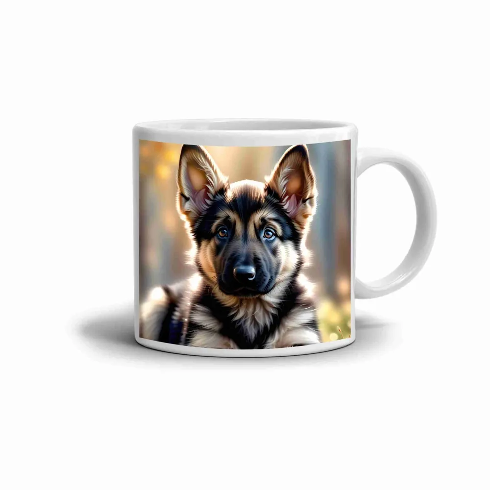 Motiv hrnku zachycuje mladé štěně v okamžiku plném zvědavosti a radosti. Jeho upřímný pohled a roztomilé držení hlavy působí hřejivě a přirozeně. Jemné světlo dopadající na jeho srst podtrhuje klidnou atmosféru a dodává celému výjevu jemnost i pozitivní energii. Hrnek je vhodný do myčky!