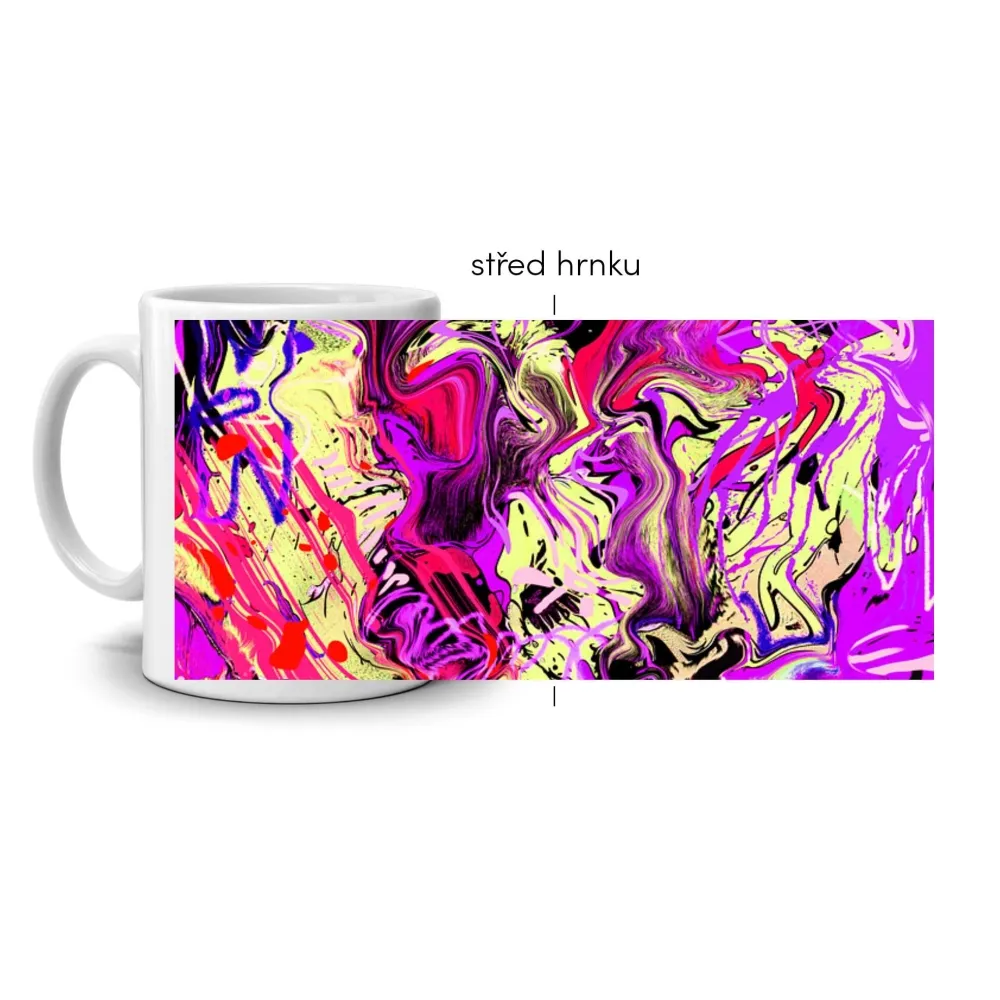 Výrazná směs barev a tvarů vytváří vizuální explozi plnou pohybu a emocí. Abstraktní motiv v odstínech růžové, fialové, žluté a černé působí jako proud energie, který rozzáří každý okamžik. Tento hrnek přináší do běžného dne kreativitu, odvahu a pozitivní náladu. Hrnek je vhodný do myčky!