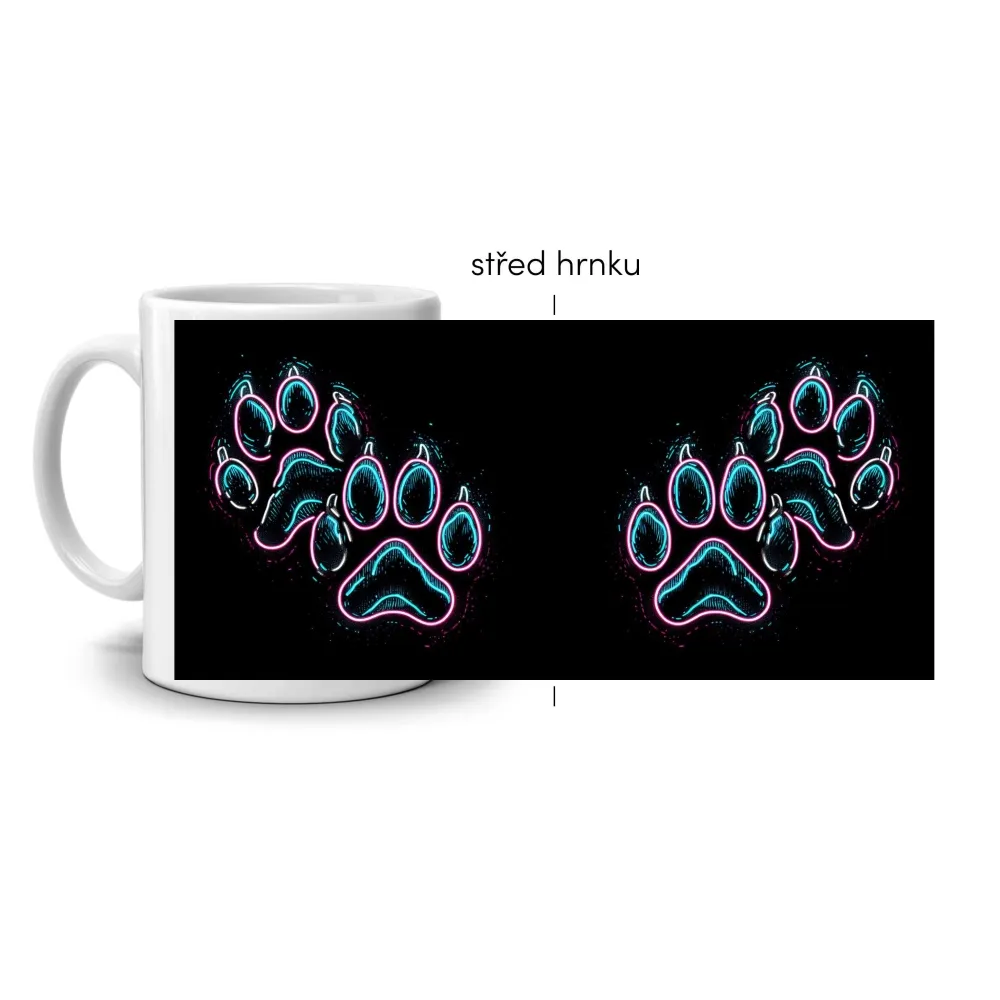 Zářivý motiv psa vytvořený v neonových barvách přináší moderní, energický a výrazný vizuální styl. Silueta psa působí hrdě a pozorně, jako by sledoval vlastní barevné stopy, které se táhnou do dálky a vytvářejí obraz plný pohybu a fantazie. Kontrast s tmavým pozadím dodává celému motivu hloubku a jedinečnou atmosféru, která potěší milovníky zvířat i originální grafiky. Hrnek je vhodný do myčky!