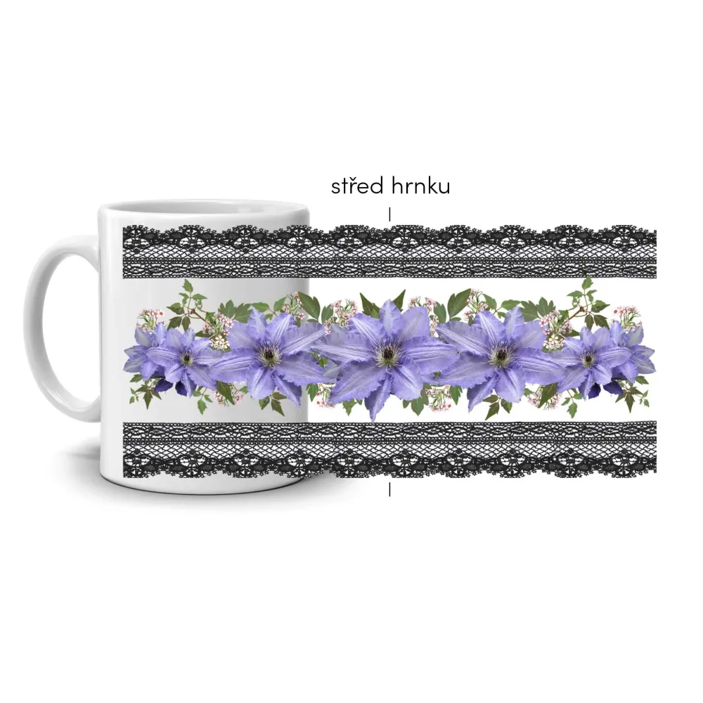 Hrnek zaujme jemným motivem plaménku, který je obklopen zelenými lístky a květy. Design působí harmonicky a barevně živě, přičemž detaily motivu jsou precizně vytištěny. Černá krajka po obou stranách motivu dodává hrnku elegantní rámování a zvýrazňuje jeho dekorativní charakter. Hrnek je vhodný do myčky!
