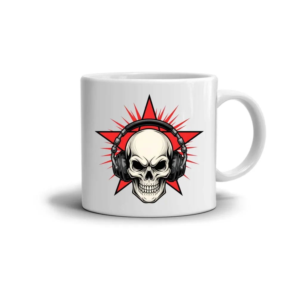 Motiv na hrnku zobrazuje výraznou lebku se sluchátky doplněnou o červenou hvězdu v pozadí. Design působí energicky a moderně, jako symbol svobody, rytmu a vášně pro hudbu. Tento motiv zaujme všechny, kdo mají rádi odvážný styl a originální doplňky s charakterem. Hrnek je vhodný do myčky!