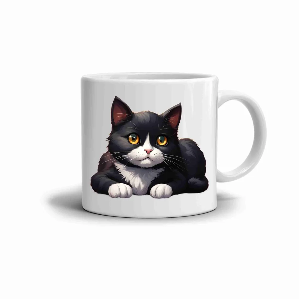Roztomilý motiv na této keramické hrnku zachycuje kreslenou kočku s jemným výrazem a výraznýma jantarovýma očima. Ilustrace působí přátelsky a hravě, díky čemuž se hrnek stává milým společníkem pro klidné i veselé chvilky u oblíbeného nápoje. Hrnek je vhodný do myčky!