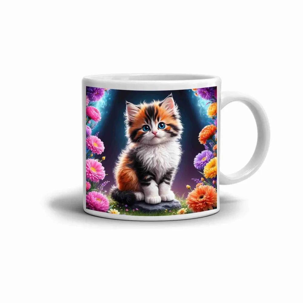 Na tomto hrnku se setkáváte s roztomilou kočičkou obklopenou kvetoucími květinami, která vytváří pocit radosti a hravosti. Barevné květy a jemné detaily zajišťují, že každý pohled na hrnek přináší pozitivní energii a úsměv. Hrnek je vhodný do myčky!