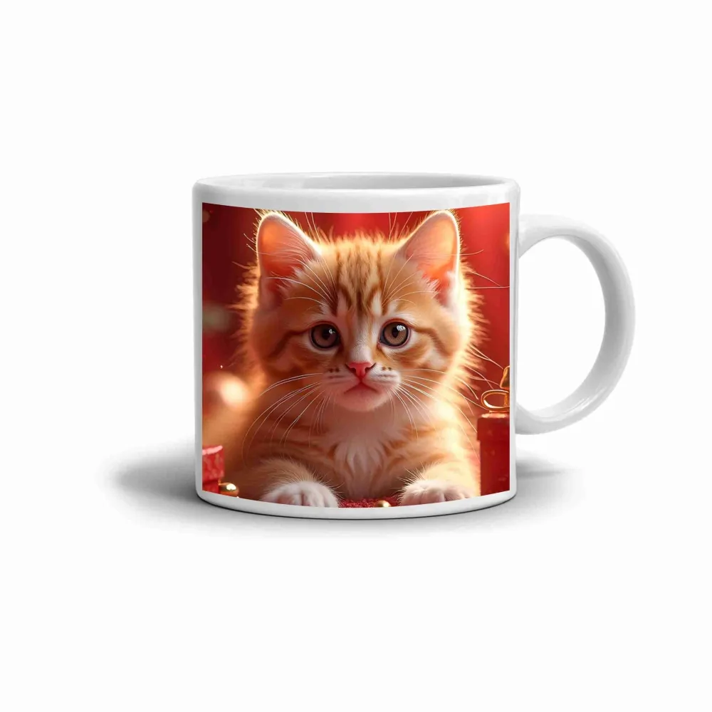 Motiv hrnku působí hřejivě a okouzlí každého milovníka koček díky roztomilému zobrazení zrzavého kotěte v jemném motivem s teplými odstíny červené a zlaté. Jemná kresba srsti a výrazné oči dodávají obrázku něhu a hravost, která se krásně doplňuje s celkovou atmosférou hrnku. Hrnek je vhodný do myčky!