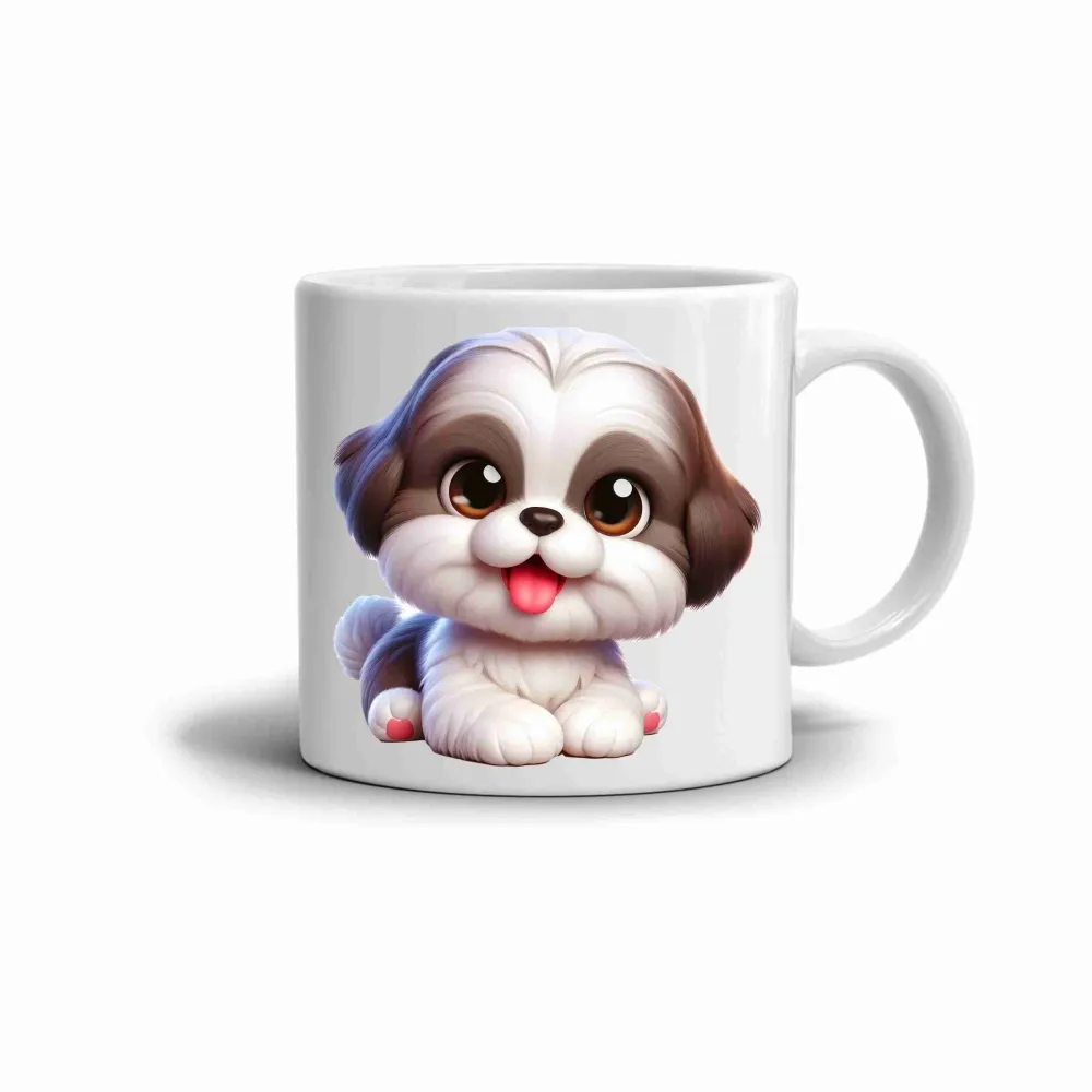Motiv hrnku zachycuje roztomilého pejska s velkýma očima a přátelským výrazem, který okamžitě vyvolá úsměv. Jemné barvy a měkké linie dodávají obrázku hravost a půvab. Tento motiv působí vesele a přináší radost do každého dne. Hrnek je vhodný do myčky!