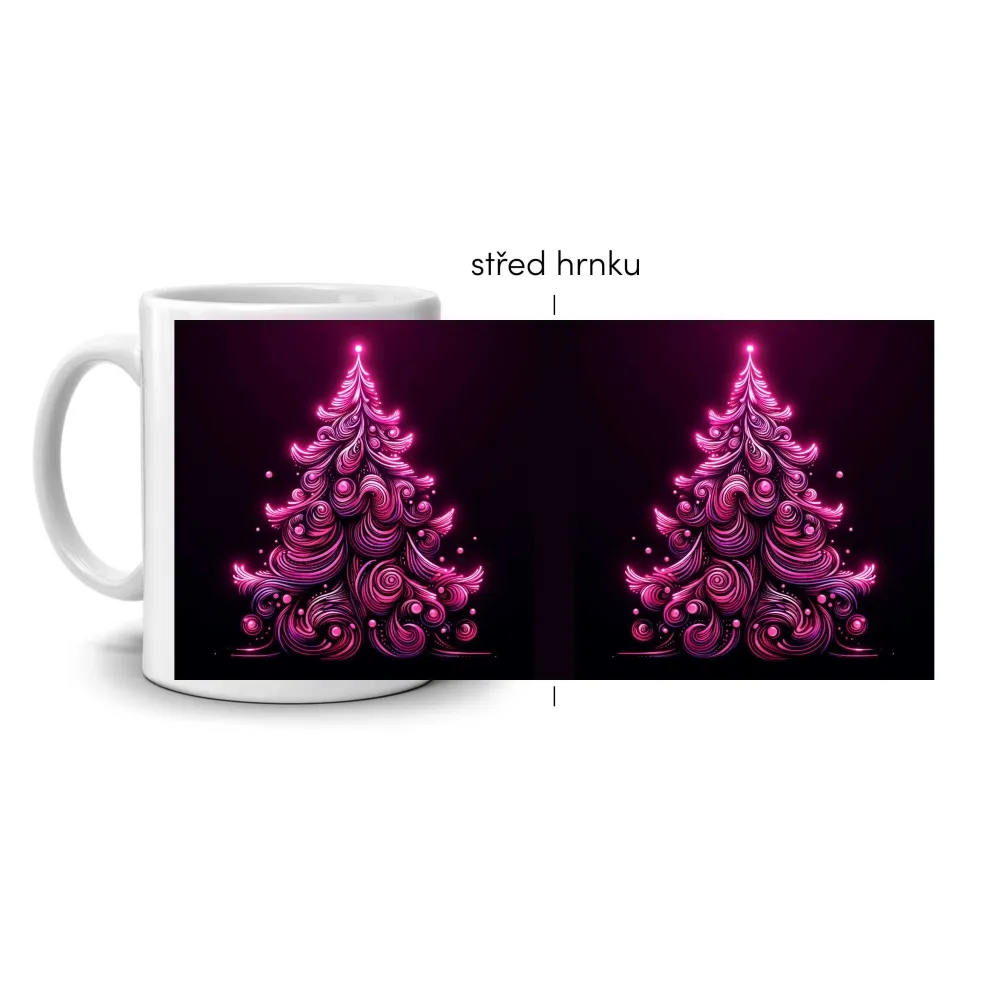 Zářivě růžový motív vánočního stromu okamžitě upoutá pozornost svým světelným efektem a propracovanými křivkami. Strom působí dojmem, jako by jemně zářil do temného pozadí, a dodává celé scéně moderní a slavnostní atmosféru. Kombinace růžové záře a dekorativních linií vytváří hravý a elegantní vzhled, který rozzáří každý zimní den. Hrnek je vhodný do myčky!